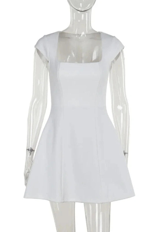 A-Line Mini Dress with Square Collar and Short Sleeves