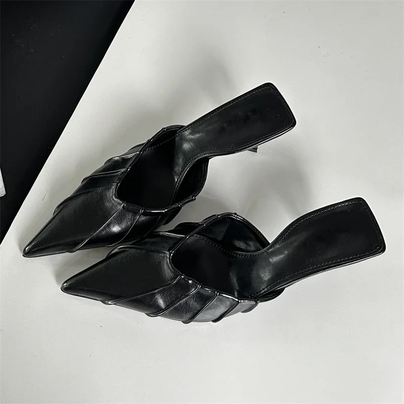 Spring Elegant Pleated Women Slipper Sexy Pointed Toe Thin Low Heels Slingback Mules Shoes